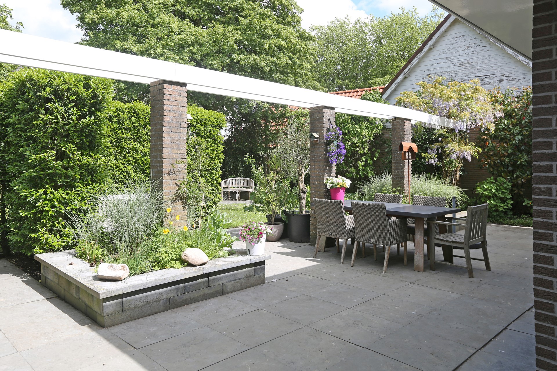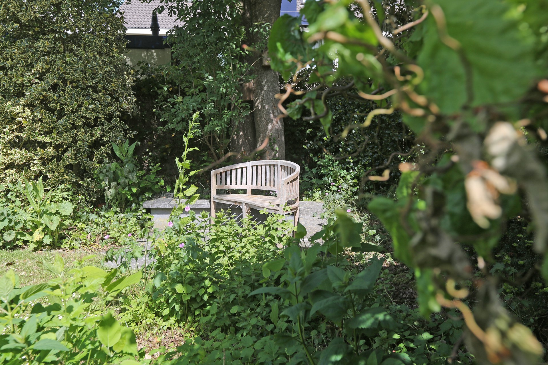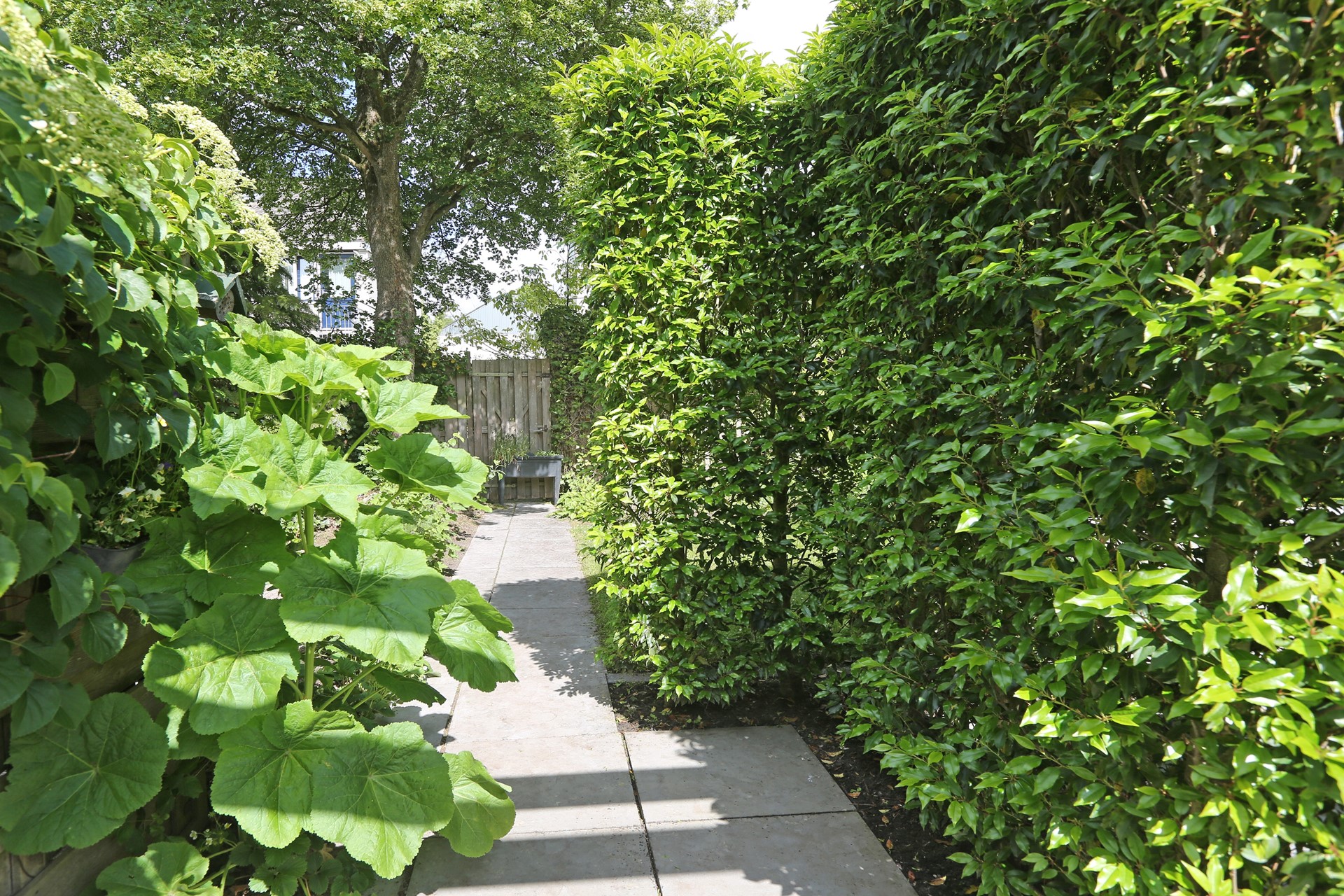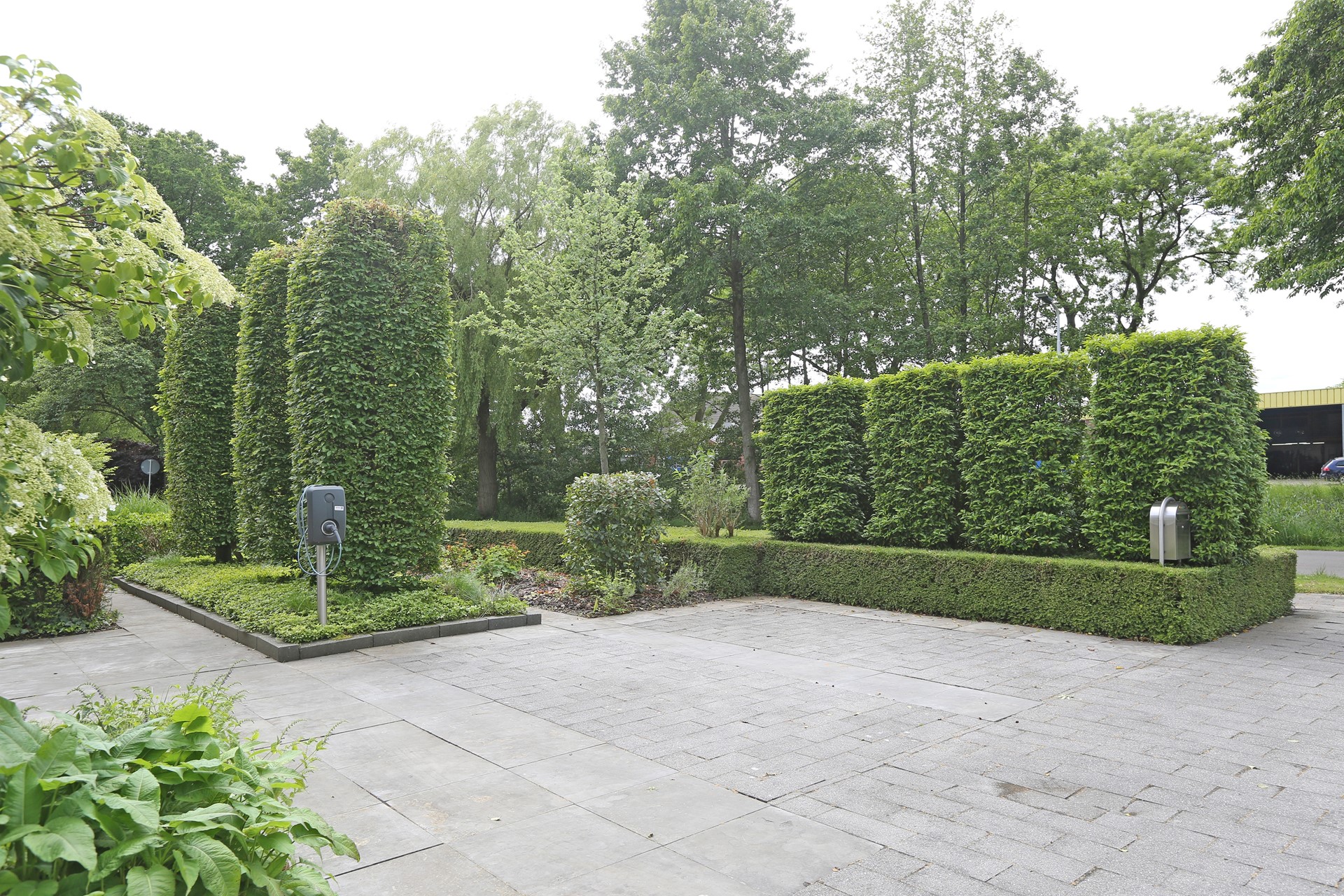 De woning staat op 730m² eigen grond en heeft rondom een fraai aangelegde en goed onderhouden tuin. Aan de voorzijde is plaats voor 3 auto’s en er is een eigen laadpaal. In de achtertuin is veel groen en er zijn diverse terrassen, er is altijd wel een plek te vinden in de zon, of juist in de schaduw. Achter de garage staat een witgekleurd tuinhuis, handig voor het tuingereedschap en opslag van tuinstoelen en kussens.