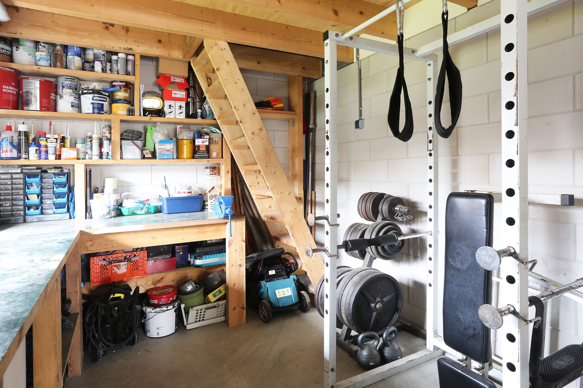 In 2018 is er een hele nieuwe garage gebouwd van ca. 8 x 3,8 meter met een kap, een overstek aan de zijkant en een carport aan de voorzijde. De gehele garage is uitgevoerd met spouwmuren, volledig geïsoleerd en zelfs voorzien van centrale verwarming. Niet alleen de ruimte beneden is royaal, maar ook de zolder is verrassend groot.