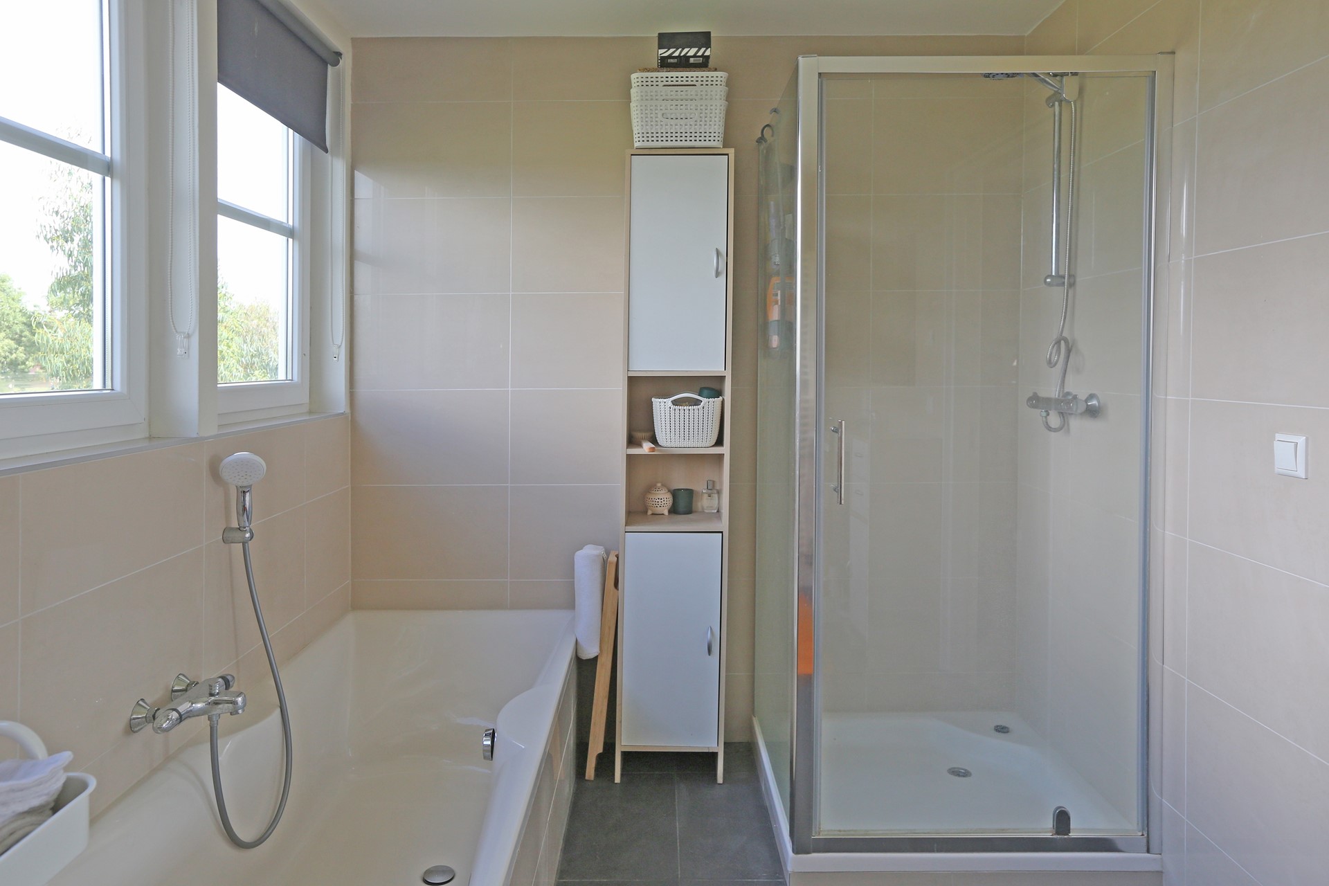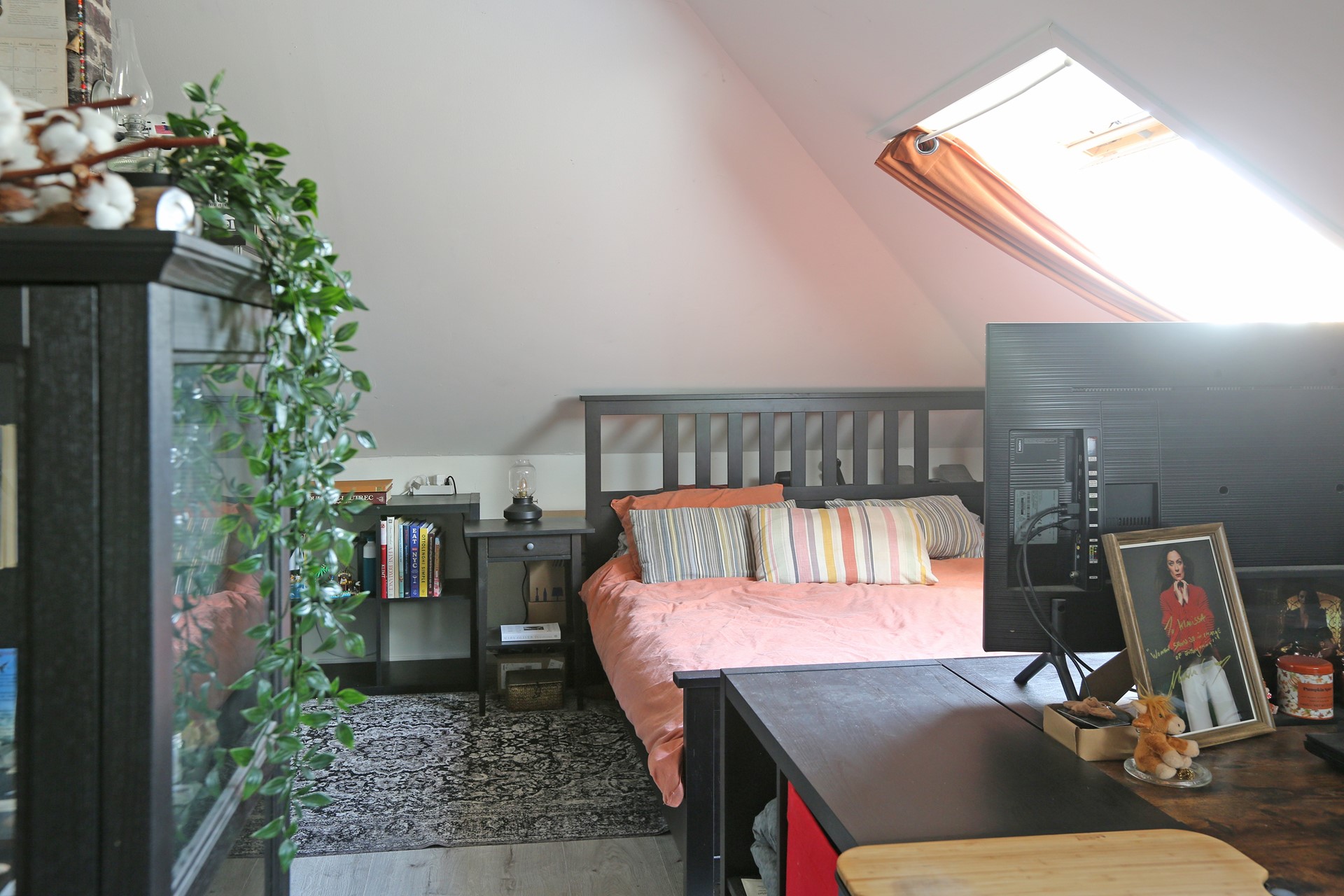 Overloop, 3 slaapkamers, waarvan één hele grote, waarvan eenvoudig 2 kamer van gemaakt kunnen worden, badkamer met dakkapel aan de achterzijde voorzien van een douchecabine, ligbad, toilet en wastafelmeubel