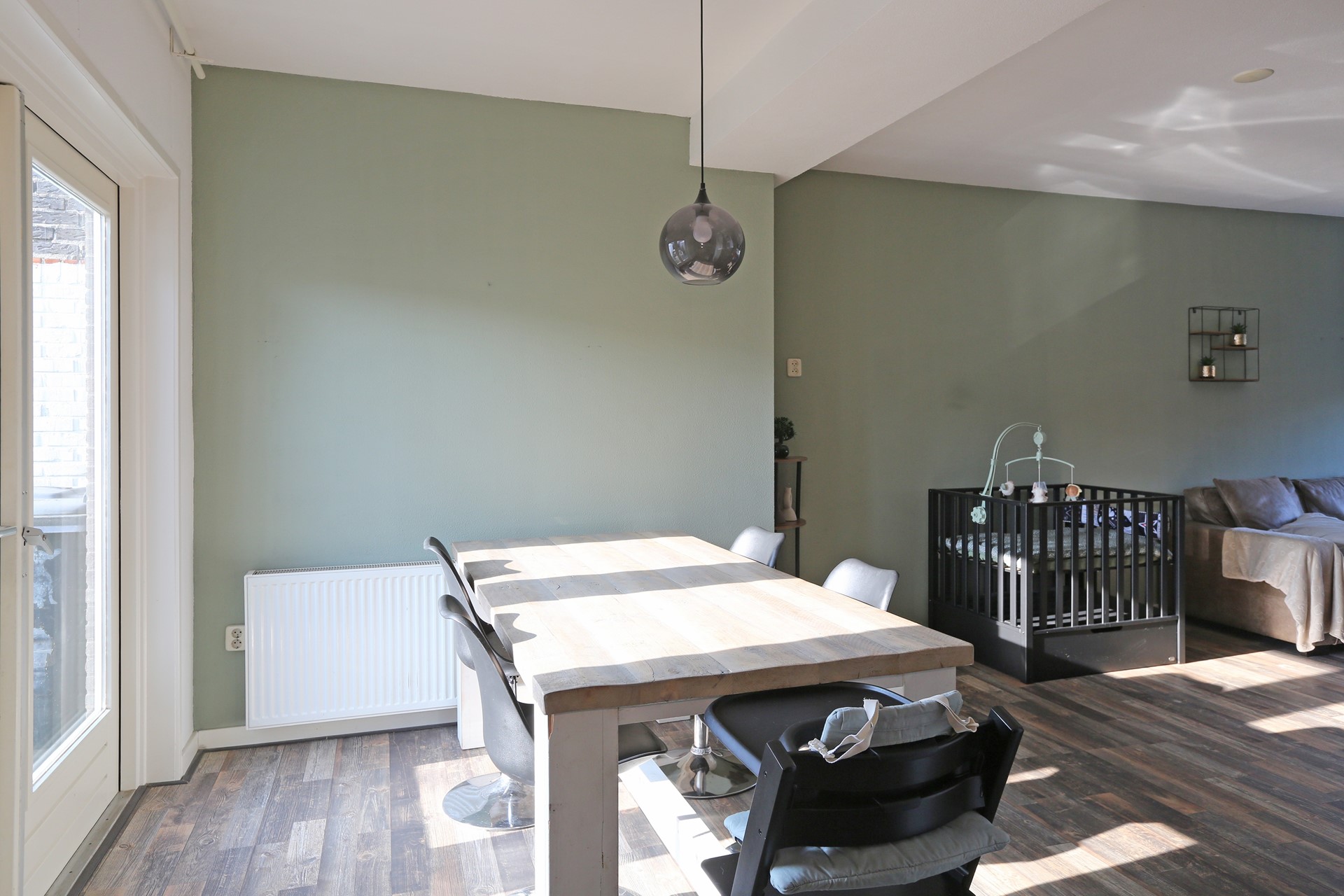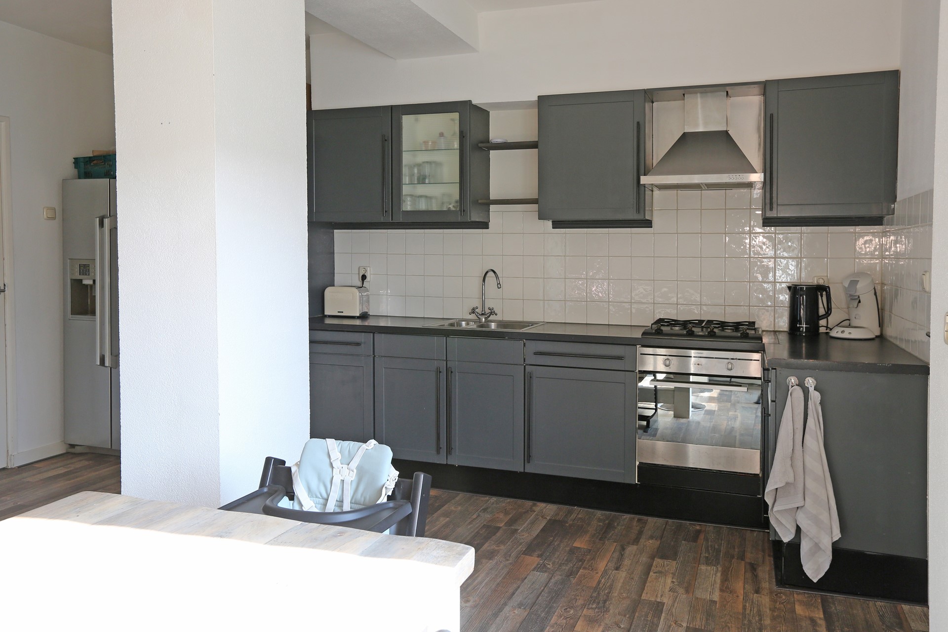 De woning betreft een woning uit de jaren 50, waar door de jaren heen veel aan gedaan is. Zo is er een aanbouw aan de achterzijde van ca. 2,5 meter met openslaande tuindeuren en een bijkeuken. Hierdoor is er veel meer ruimte ontstaan voor een royale hoekkeuken en een grote eettafel.