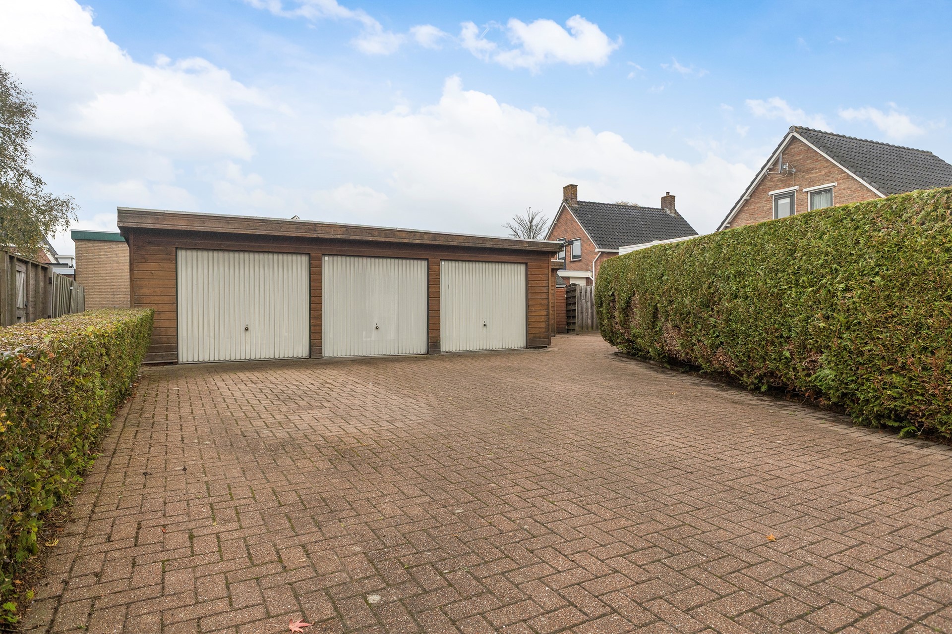 Wat deze woning extra aantrekkelijk maakt is de grote garage/schuur van bijna 50m², eigenlijk zijn het 3 garages naast elkaar. Ideaal voor het stallen van auto’s, motoren, fietsen of te gebruiken als werkplaats.