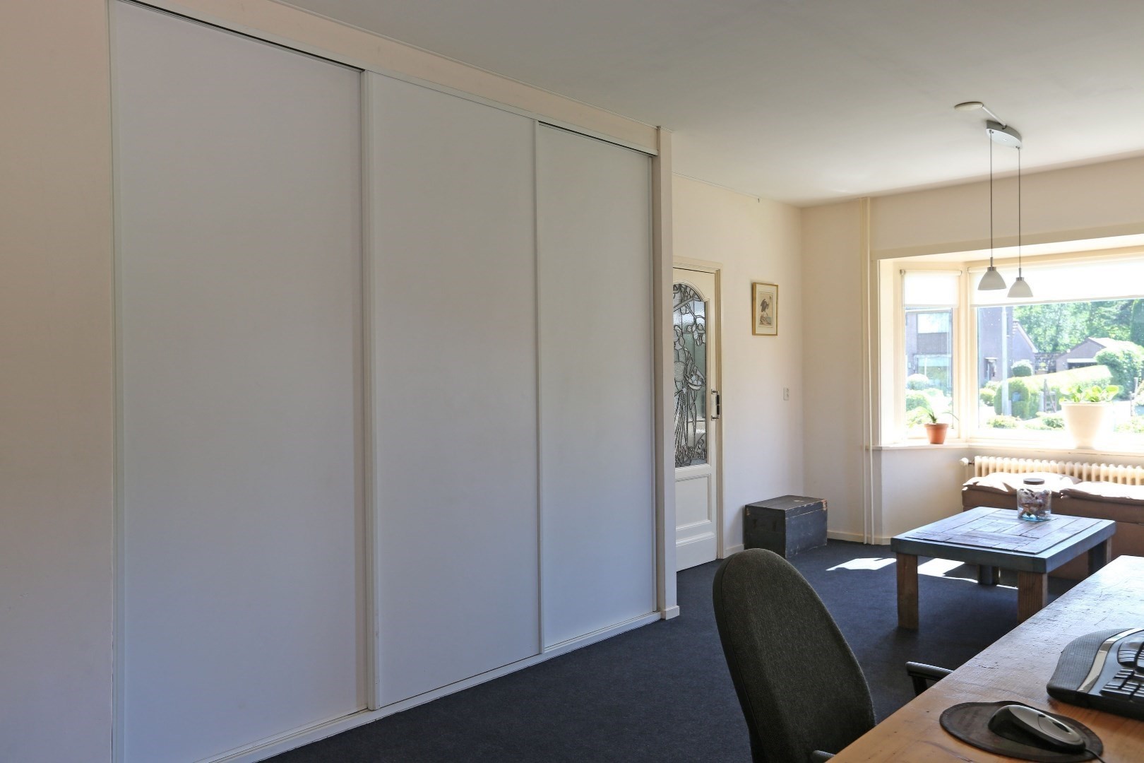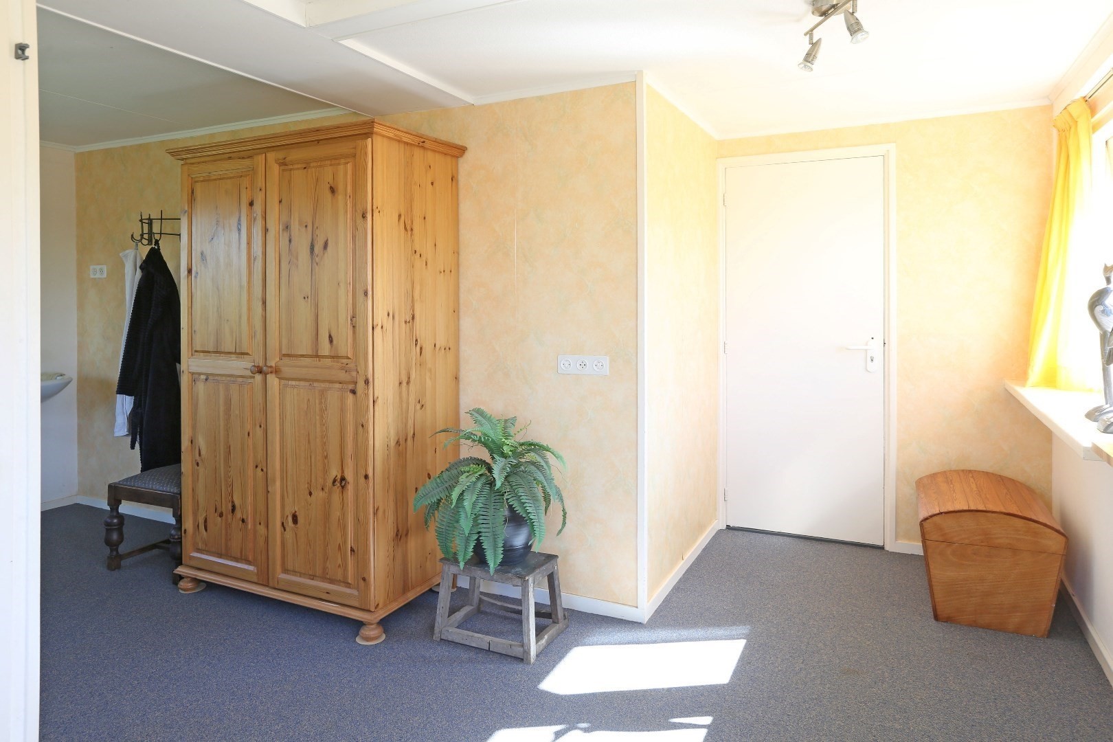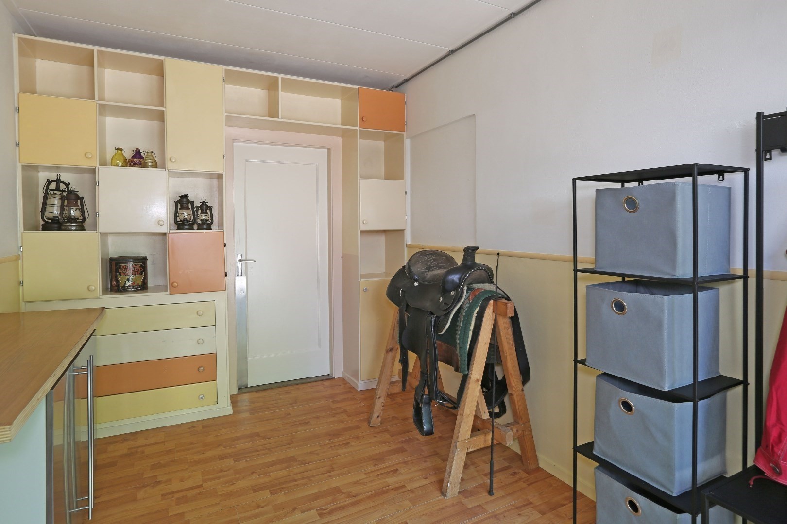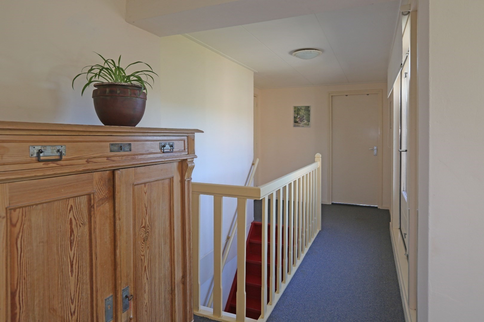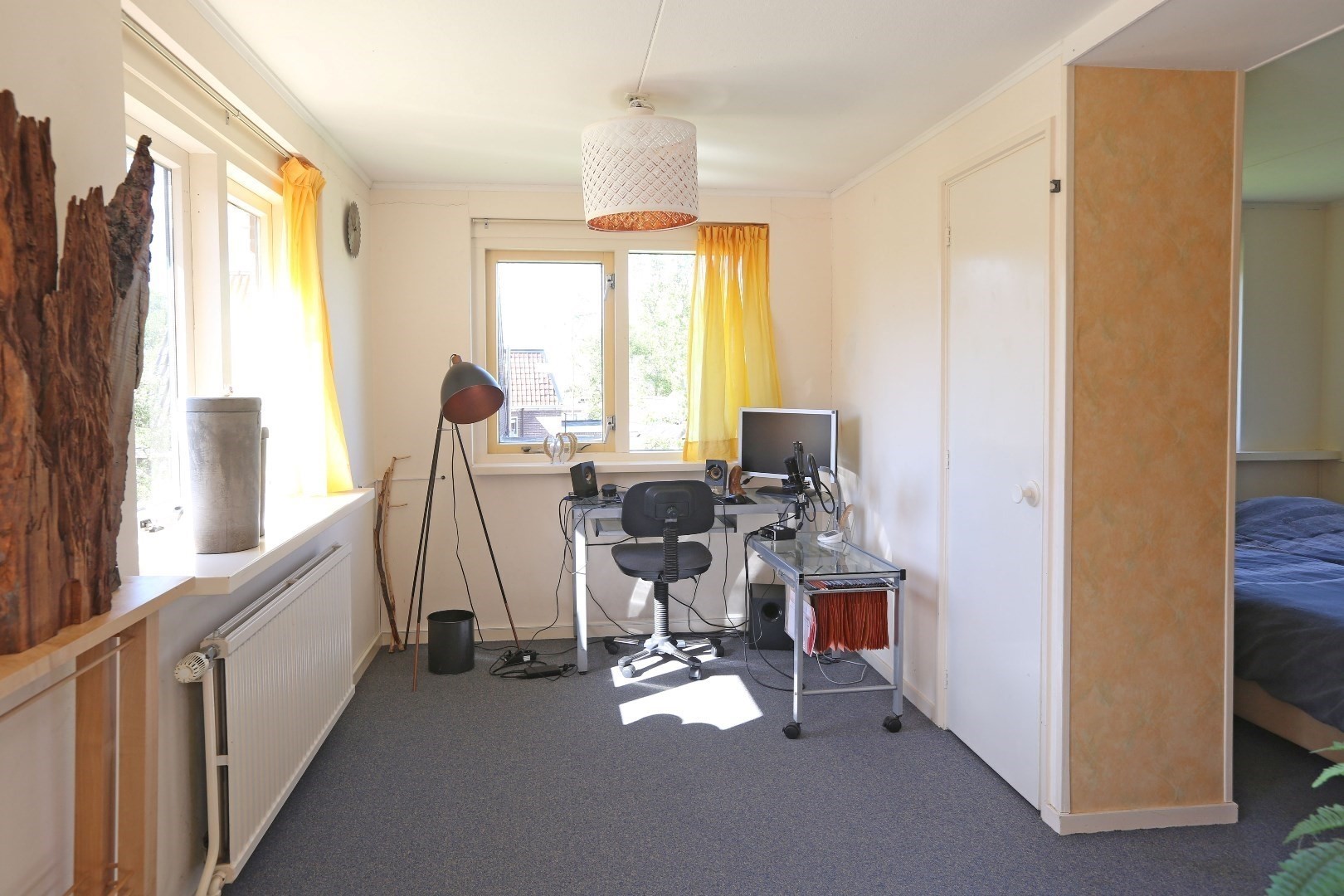 Voorste gedeelte zolderkamer met dakraam en via de vide deurtje naar bergruimte op de zolder.