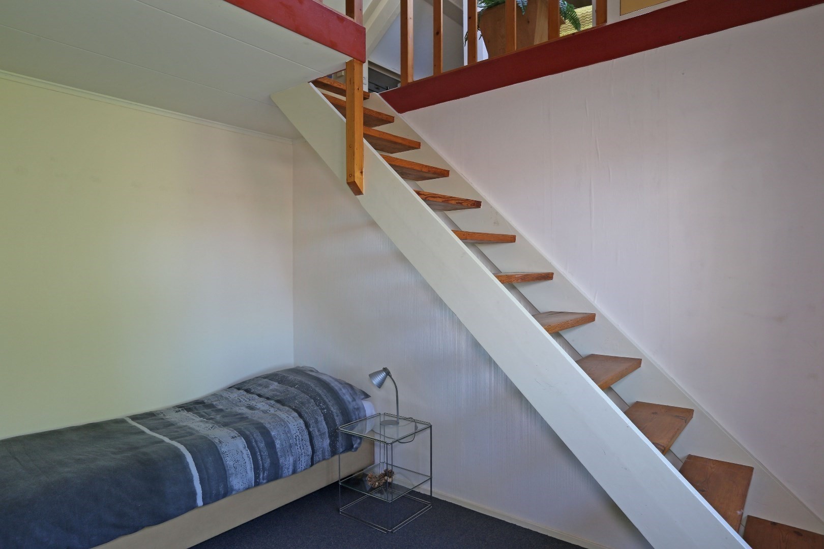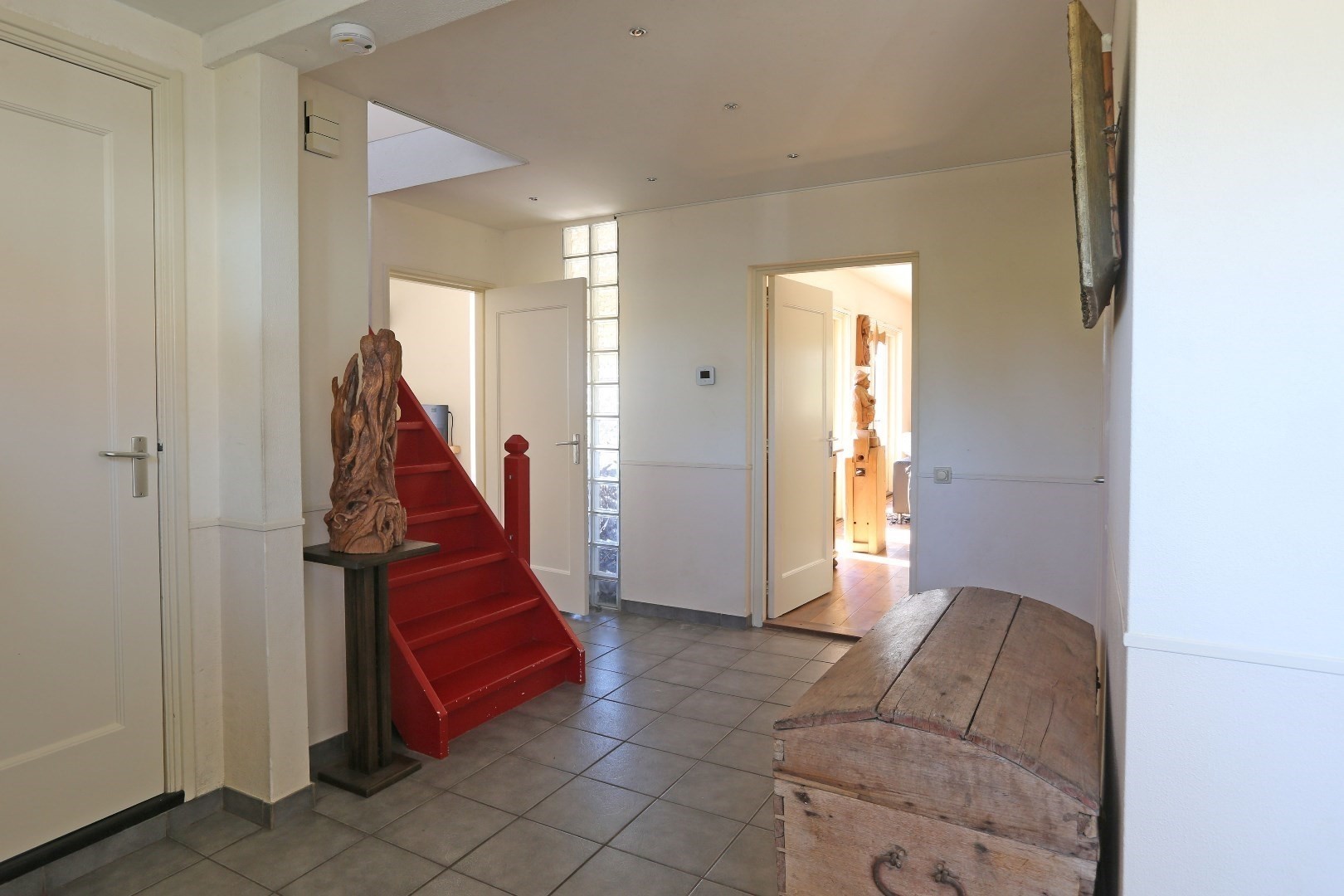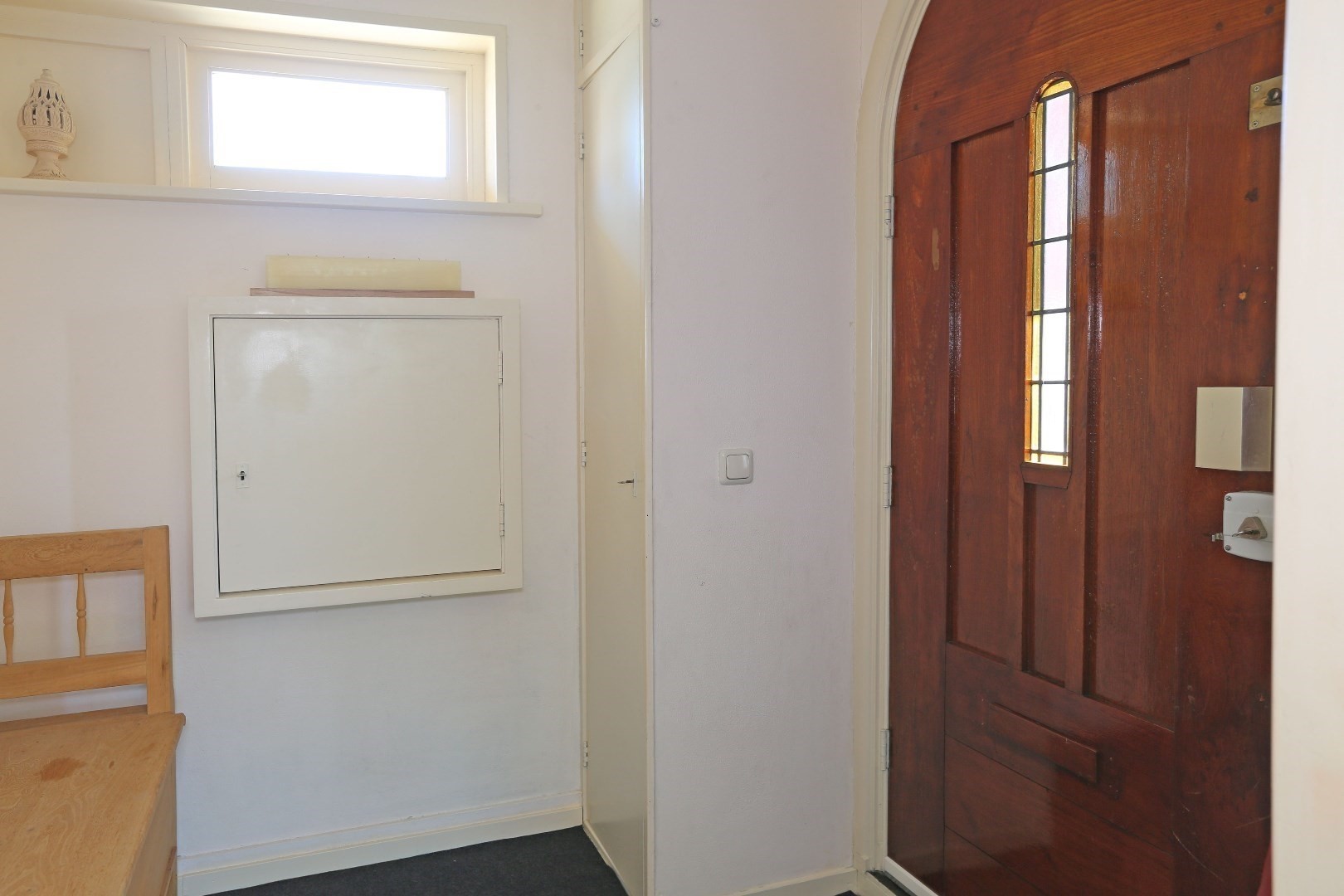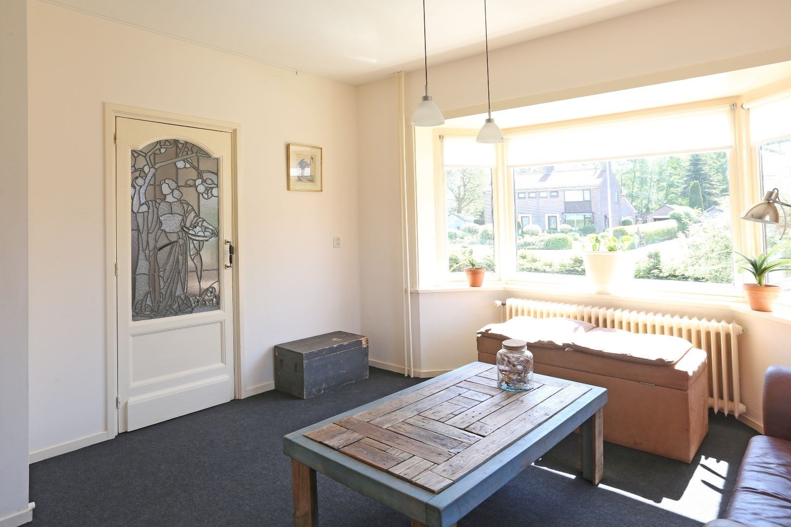 Voorste gedeelte zolderkamer met dakraam en via de vide deurtje naar bergruimte op de zolder.