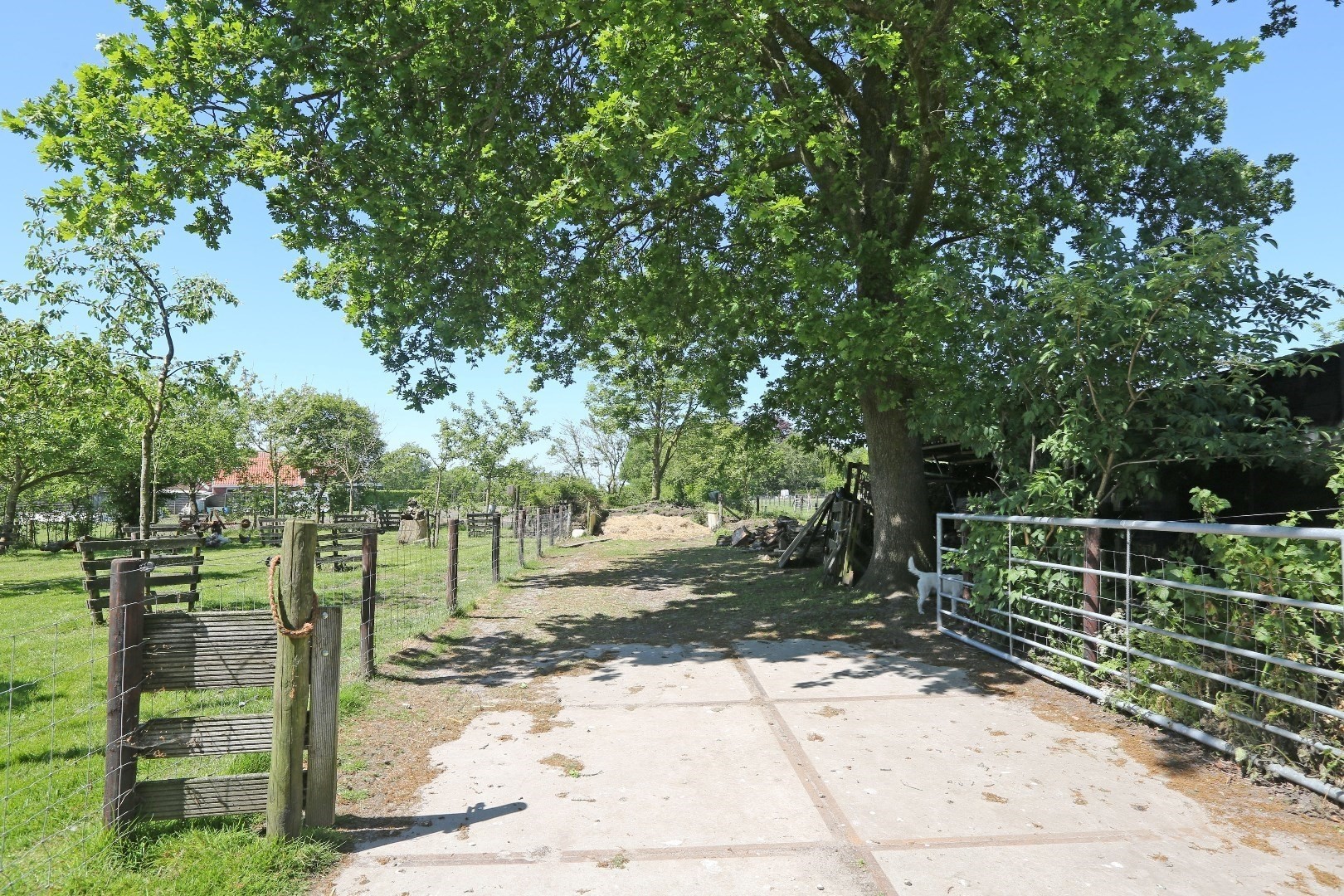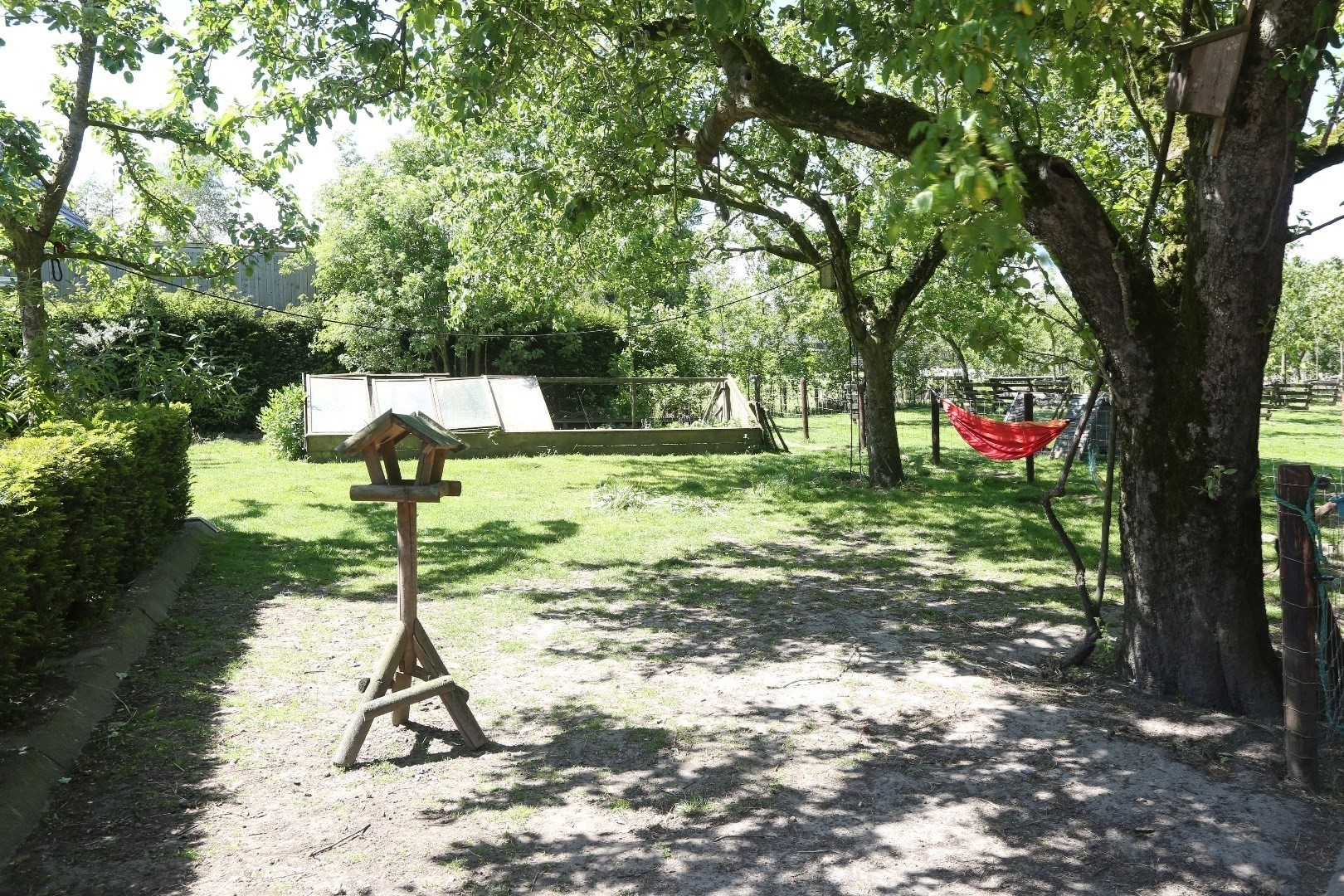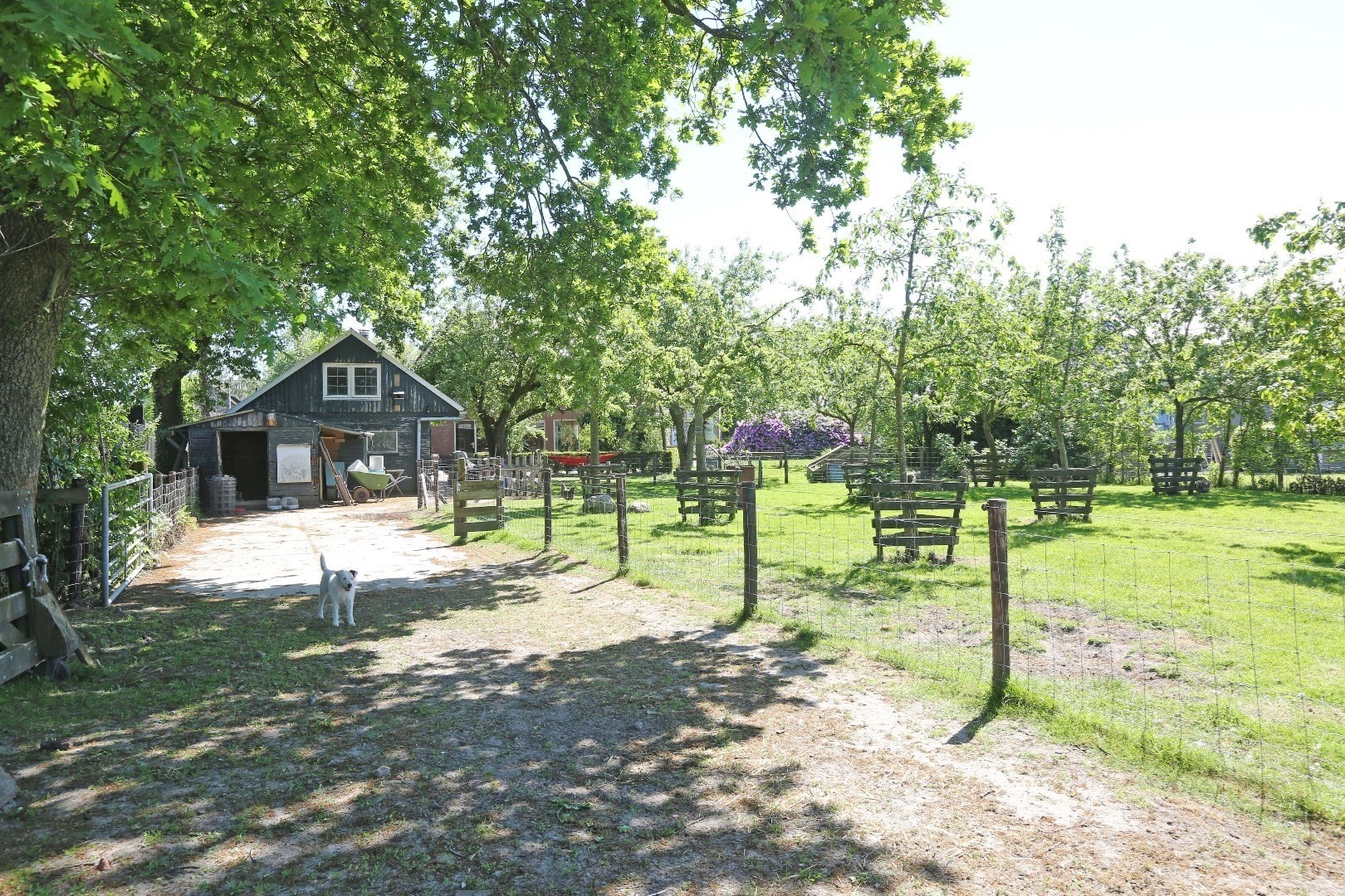 De woning staat op een ruime kavel van in totaal bijna 8000m², waarvan het huisperceel ca. 2335m² is. Achter de woning is een boomgaard met verschillende soorten fruitbomen, van appels en peren tot pruimen. Rond de bomen scharrelen de kippen rond. Achter het huisperceel bevindt zich een perceelweiland waar 3 mooie paddocks in gemaakt zijn, momenteel lopen er schapen, geiten en een ezel, maar het is ook zeer geschikt voor het houden van paarden. Er loopt een pad helemaal naar achteren en heeft een uitgang naar de achterliggende straat de Wedze.